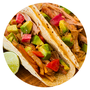 Tender pieces of chicken marinated with Mexican spices and a light spicy touch, served on a corn tortilla and accompanied by a creamy chipotle mayonnaise that provides a smoky balance and a mild heat.