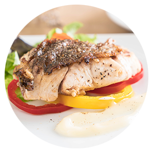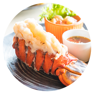 Half a lobster tail marinated in butter infused with fresh thyme, garlic, and capers, roasted to a juicy and tender texture.